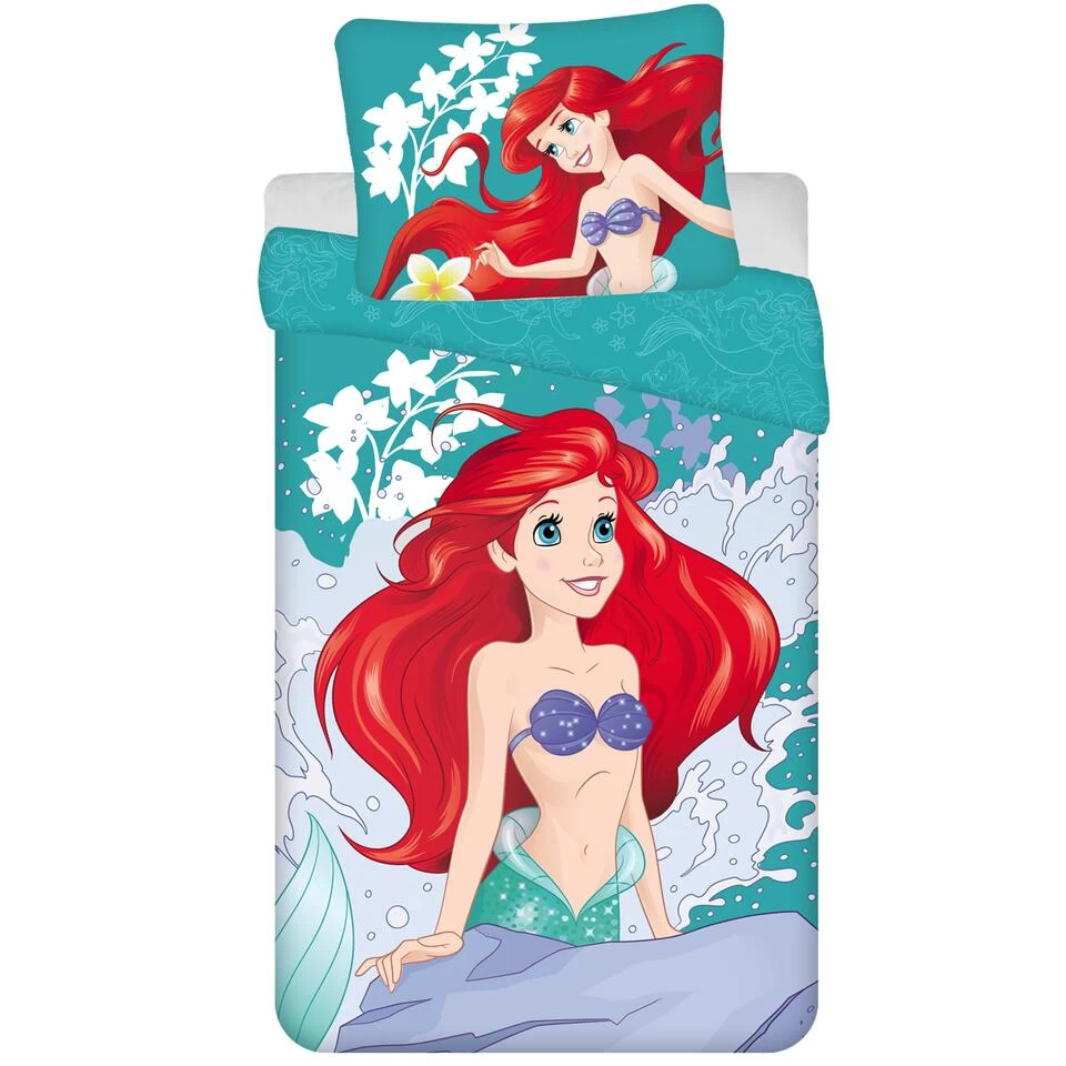 Disney Kleine Zeemeermin Dekbedovertrek, Ariël. Geweldig katoenen dekbedovertrek van de Kleine Zeemeermin. Ariel droomt van het leven op het land. Waar droom jij van? Dit kleurrijke dekbedovertrek is een echte blikvanger voor de slaapkamer. Een ideaal cadeau voor de fans van De Kleine Zeemeermin en leuk om te geven voor een verjaardag of de feestdagen. De overtrek is dubbelzijdig bedrukt, wat leuke opties geeft bij het opmaken van het bed en wordt geleverd met extra groot kussensloop.